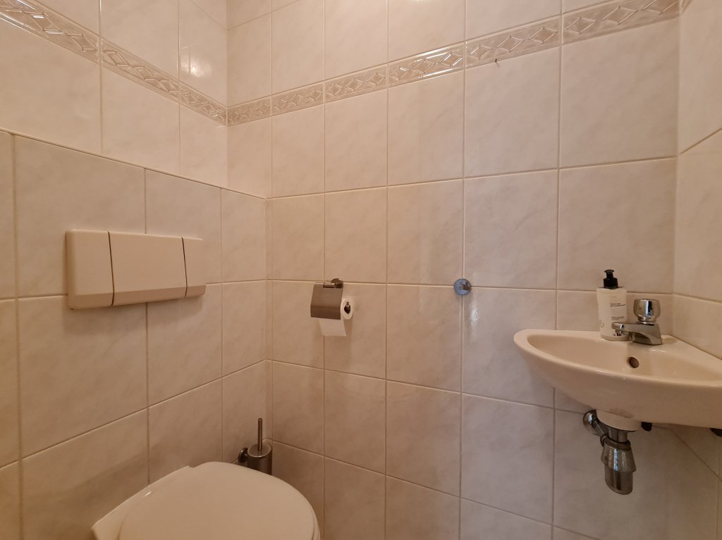 Entree/hal, meterkast, toilet met fonteintje. Twee goed bemeten slaapkamers met een rustige ligging aan de achterzijde van het complex. De ene slaapkamer is voorzien van een fraaie parketvloer en de grootste slaapkamer voorzien van een zachte vloerbedekking.
