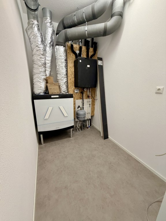 - Er is een bergingsruimte voor aansluiten van wasmachine, droger en ruimte voor opslag.
