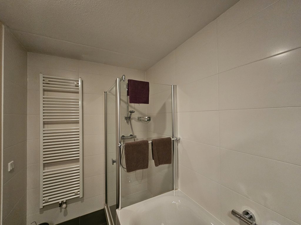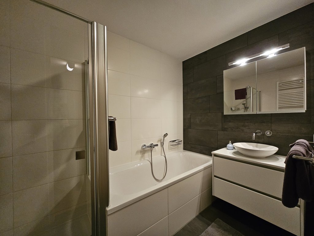 Vanuit de hal is tevens de badkamer met douche, ligbad en wastafel met spiegelkast toegankelijk.