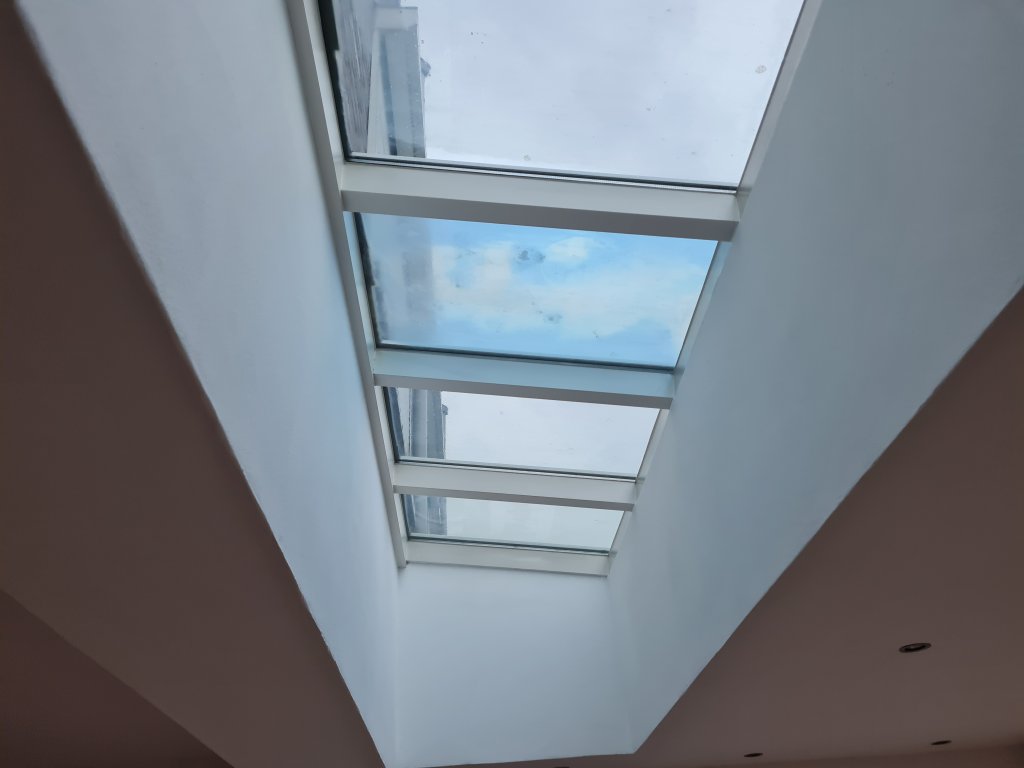 Wat direct opvalt is het vele licht dat door de grote glazen achterpui en een lichtstraat in de aanbouw in de woonkamer valt. Aan de voorzijde van de woonkamer bevindt zich de half open keuken welke is voorzien van diverse inbouwapparatuur.
