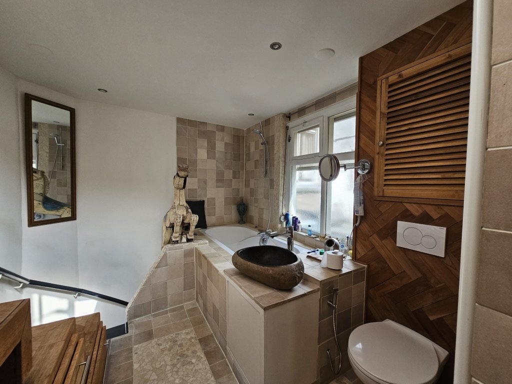 Nog een verdieping omhoog op de tweede etage komt u in het middelpunt van de badkamer terecht waar u tot volledige ontspanning kan komen. Hier zijn ook de wasmachine voorzieningen beschikbaar en treft u een van de twee slaapkamers.