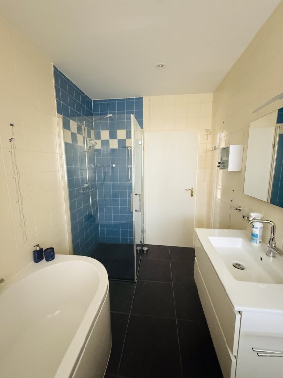 Badkamer: Luxe badkamer met douche én ligbad.