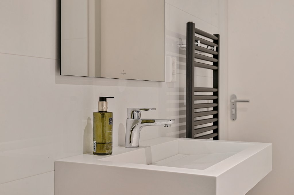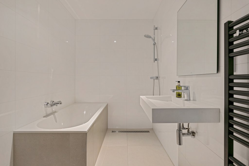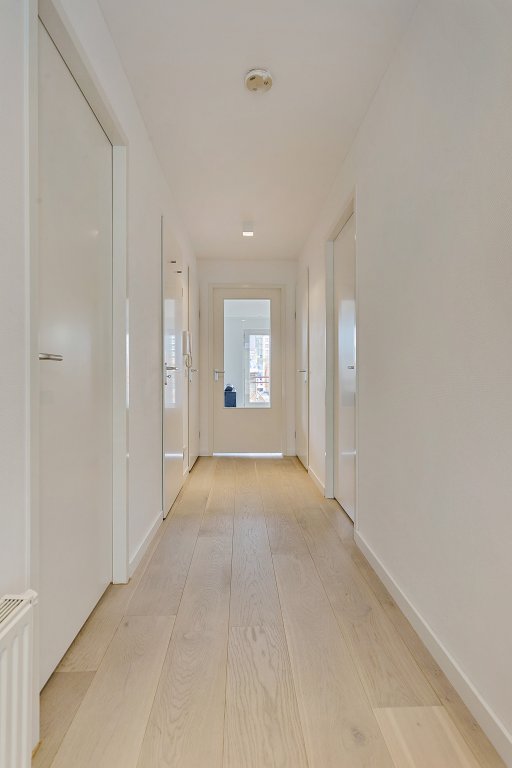 Overdekte portiek, entree van appartement, ruime hal, logeerkamer cq. Hobbykamer (7m2), luxe badkamer met slechte voorzieningen van een douche en luxe apart toilet met hangkast. In de eerste slaapkamer is er plek gemaakt voor de wasmachine. De grote hoofdslaapkamer heeft voldoende ruimte om een kastenwand en 2-persoonsbed neer te zetten. De ruime woonkamer met een prachtige vloer en als richtpunt het kookgedeelte voorzien van granieten aanrechtblad, inductiekookplaat, afzuigkap, vaatwasser, koelkast, oven, veel pannenlades en algemene kastruimte. De kamer beschikt over een Frans balkon met openslaande deuren.