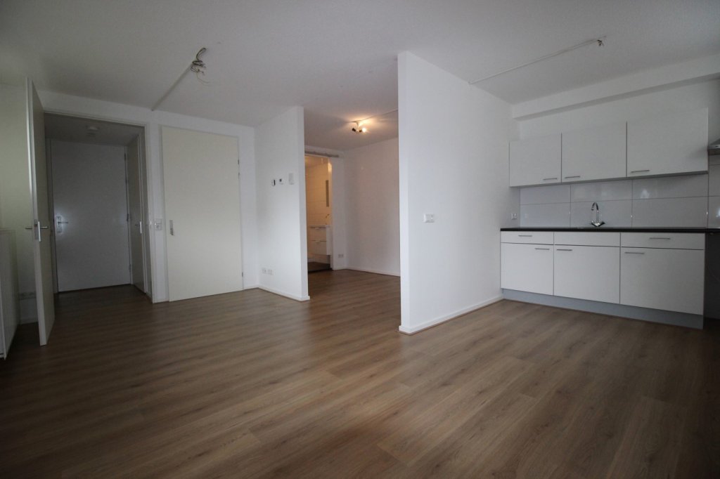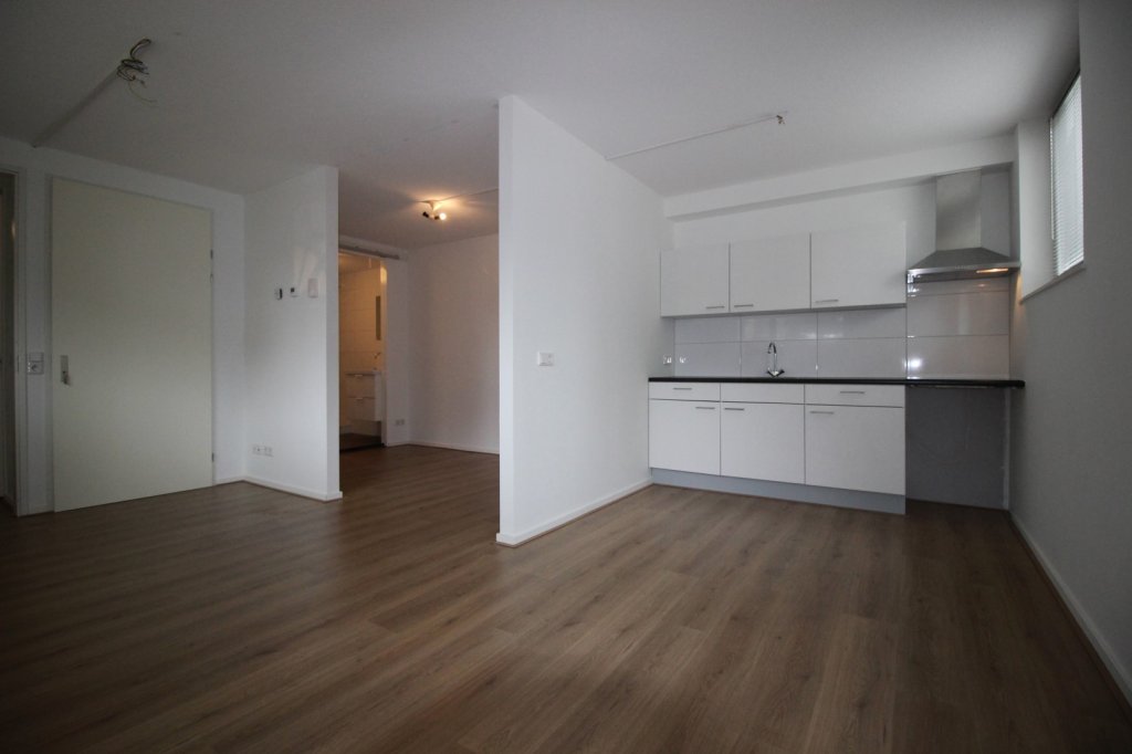 Indeling: centrale hal, entree, hal, meterkast, toilet, woonkamer met open keuken, deels afgesloten slaapkamer, badkamer.