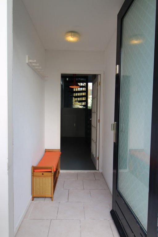 Aankomst bij het huis, parkeren op eigen erf met carport. Hier is ruimte voor één auto. Bij de entree treft u een hal, meterkast, ruime badkamer, trap naar de verdieping, extra grote berging/kelder en toegang tot de slaap-/ werkkamer met 2 persoonsbed, kast en inrichting achterkamer met studie/ werkruimte. (foto volgt).