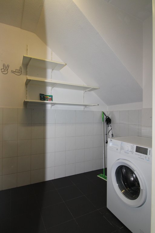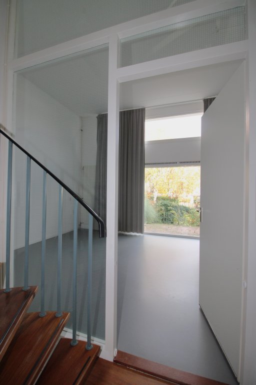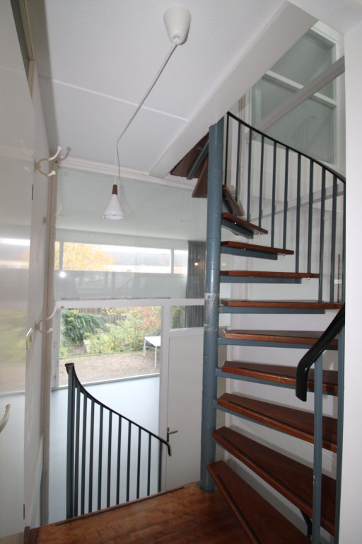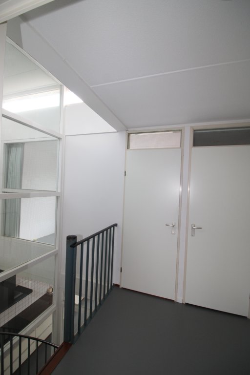 Om deze verdieping te bereiken, kan op 2 mogelijkheden, de zij trap met vloerbedekking of de wenteltrap in de hal, welke uitkomt bij het toilet.