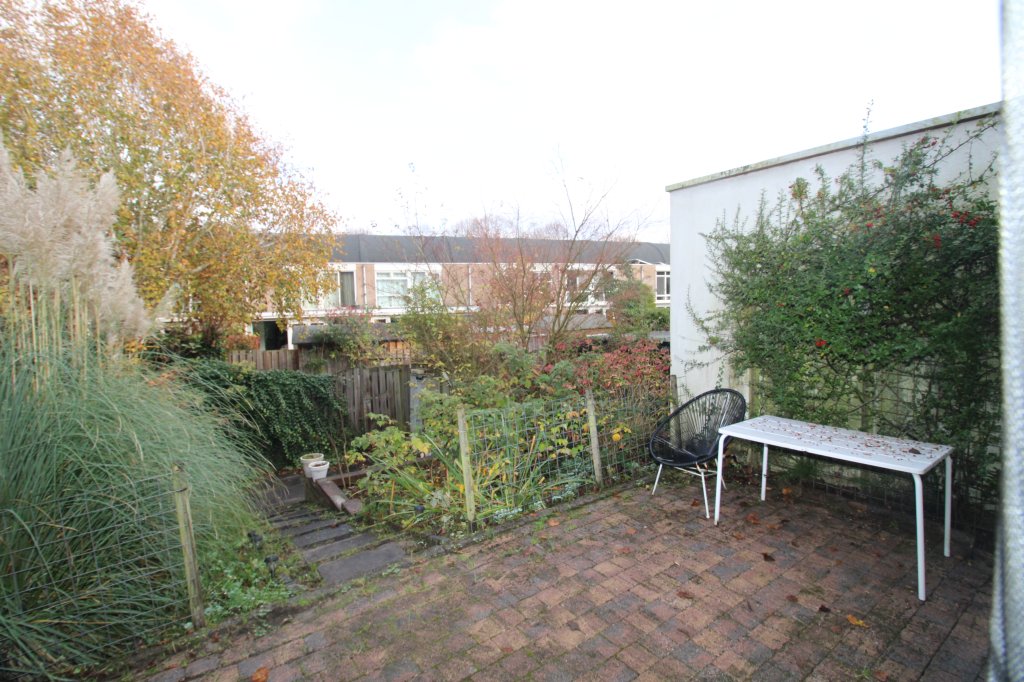 Hier bevindt zich de ruime woonkamer, voorzien van ruime hoekbank, salontafel. De woonkamer geeft doorgang naar de gelevelde tuin met achterom.