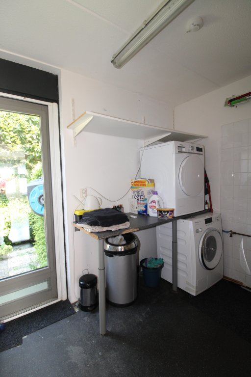Begane grond: Entree, ruime hal met toegang tot de werkkamer/slaapkamer, het toilet, de trapopgang en de riante woonkamer met een open keuken. Vanuit de werkkamer/slaapkamer heb je toegang tot de bijkeuken met de wasmachine en droger. Vanuit de bijkeuken is de achtertuin ook te bereiken. De woonkamer heeft aan de voorzijde een halfronde erker met veel lichtinval en aan de achterzijde openslaande deuren naar de prachtige diepe tuin. De open keuken bevindt zich aan de achterzijde van de woning en is voorzien van diverse inbouwapparaten o.a. een nieuwe Amerikaanse koelkast.