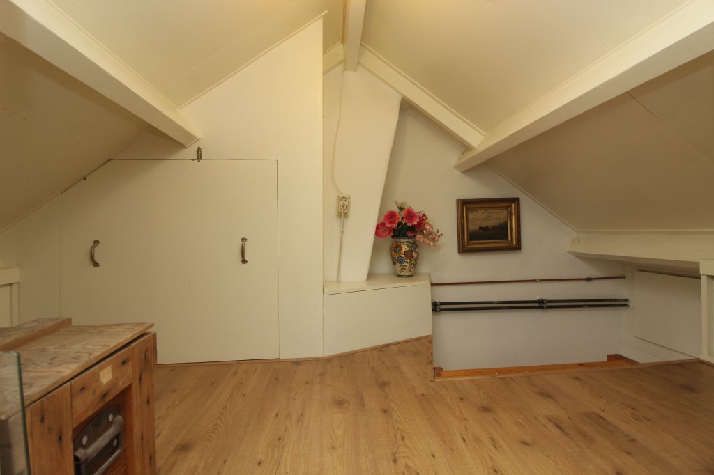 Overloop, hal met toegang tot de badkamer met wastafel en inloopdouche, separaat toilet, slaapkamer aan de voorzijde met tweepersoonsbed en grote kast, slaapkamer aan de achterzijde met 2 persoonsbed, kast en bureau, kastenkamer aan de achterzijde en trapopgang naar de 2e verdieping.