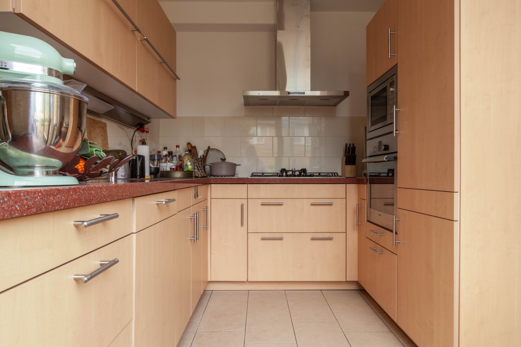 Via de hal met garderobe en toilet kom je in de lichte woonkamer met openhaard aan de voorzijde van de woning en zonnige eetkamer met schuifpui aan de achterzijde. Via de eetkamer loop je de halfopen keuken in met aparte achterdeur naar de tuin. De U-vormige keuken is voorzien van veel opbergruimte en diverse luxe inbouwapparatuur.