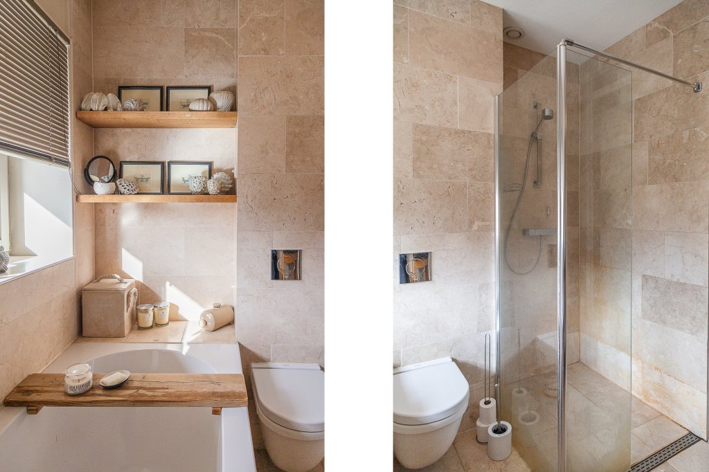 Op de eerste verdieping bevinden zich drie slaapkamers en de badkamer. De badkamer is voorzien van een ligbad, wastafel, toilet en aparte douche.