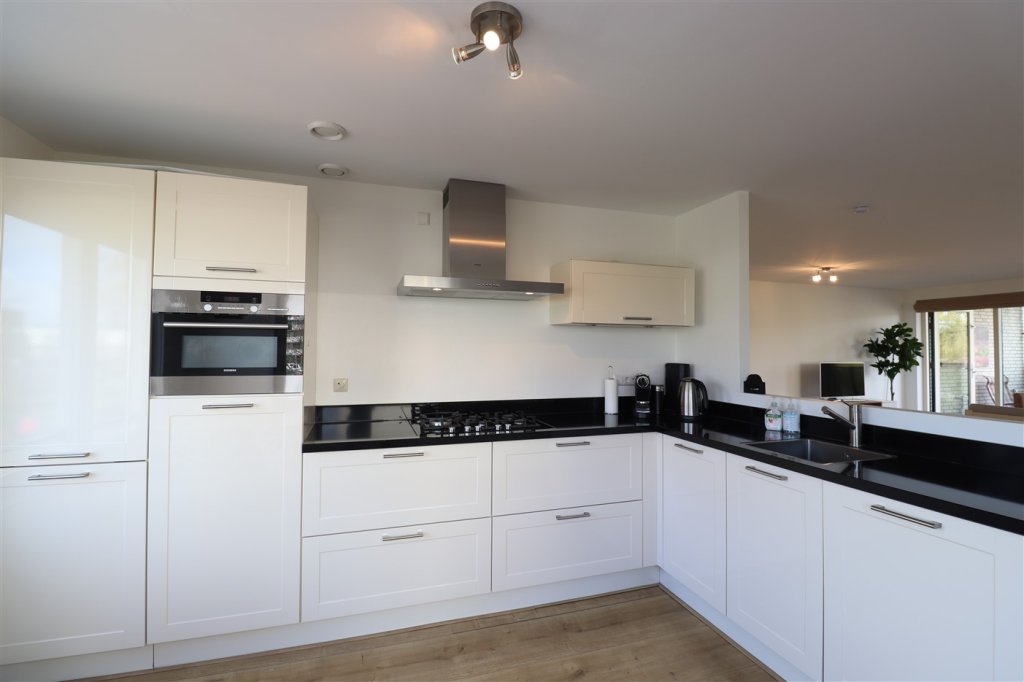 Via de L-vormige hal heeft u toegang tot de meeste vertrekken van het appartement. Bij binnenkomst in de royale hal de garderobe, 2 meterkasten en het separate toilet met fonteintje. Gevolgd door de moderne badkamer met wastafelmeubel met dubbele spoelbak, bad en douche. De enorme woonkamer is door de hoek positie van het appartement zonovergoten door de vele fraaie grote ramen. De semi open keuken is modern en beschikt over de nodige inbouwapparatuur zoals koel-/vriescombinatie, 5-pits gaskookplaat, rvs afzuigkap, combimagnetron en vaatwasser. Tevens vanuit de woonkamer de toegang tot het balkon op het zuidwesten. Aan het eind van de langgerekte L-vormige hal de vertakking naar 2 mooie ruime slaapkamers en een handige inpandige berging welke tevens is voorzien van de wasmachine en droger. De masterbedroom beschikt over een kingsize bed en wandmeubel. De tweede slaapkamer die kan fungeren als logeerkamer of thuiskantoor, beschikt over een grote garderobekast.