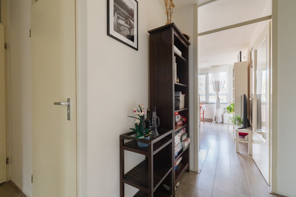 Via de gezamenlijke entree, kom je op de tweede verdieping bij de woning. Entree woning, ruime hal, welke toegang biedt tot alle vertrekken. De woonkamer en eet hoek is gelegen aan de voorzijde met een gezellig balkon. De woning beschikt over een slaapkamer, ruime werkkamer en inloop kast. De badkamer is in het hart van de woning en beschikt over een ruime inloopdouche, wastafel en design radiator.