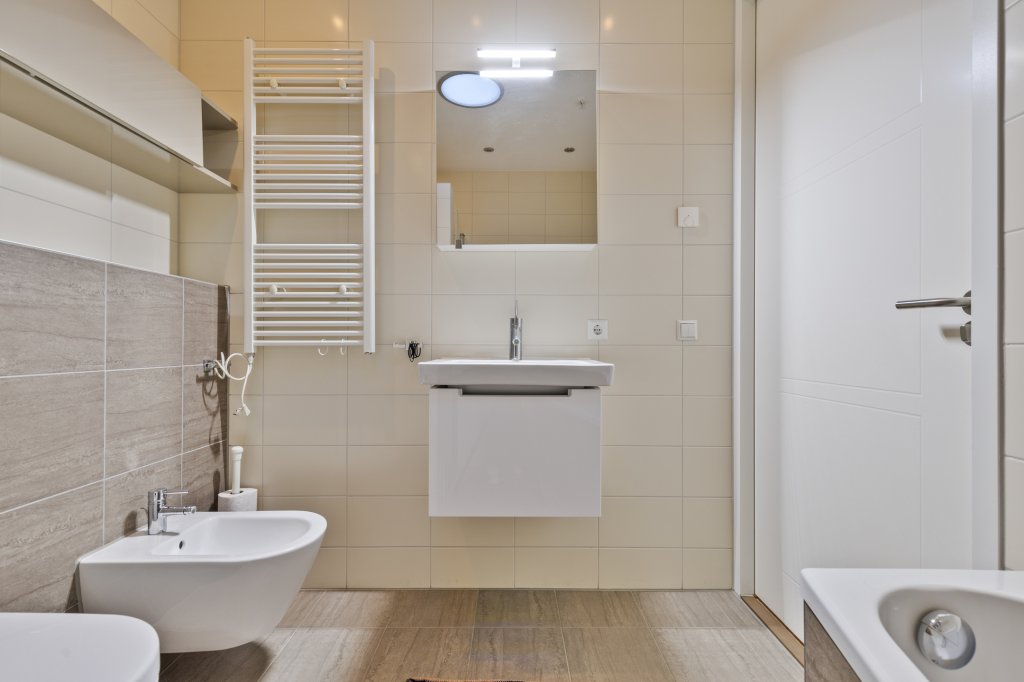 De luxe badkamer is voorzien van hoogwaardige materialen en moderne afwerkingen. Denk aan een grote inloopdouche, een vrijstaand bad en toilet en wastafel. Dit is de perfecte plek om je te ontspannen na een drukke werkdag of om jezelf op te frissen voor een avondje uit in de stad.