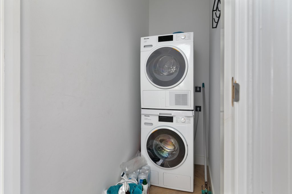 Stap binnen in de ruime en lichte woonkamer, waar hoge plafonds en grote ramen zorgen voor een heerlijke sfeer. De moderne keuken is uitgerust met hoogwaardige inbouwapparatuur, perfect voor het bereiden van een heerlijk diner. De rustige slaapkamer aan de achterzijde garandeert een goede nachtrust, terwijl de stijlvolle badkamer van alle gemakken is voorzien.