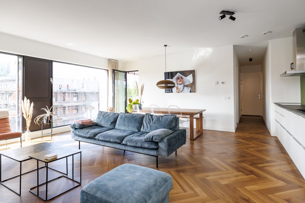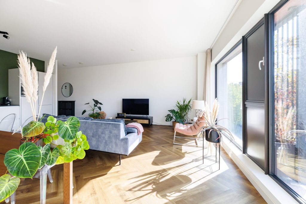 Het appartement is gelegen op de derde verdieping van een modern appartementencomplex met lift en is via een nette gemeenschappelijke entree te bereiken. Bij binnenkomst valt direct de ruime en lichte woonkamer op, met grote raampartijen die zorgen voor veel natuurlijk lichtinval.