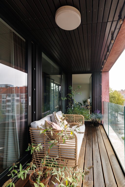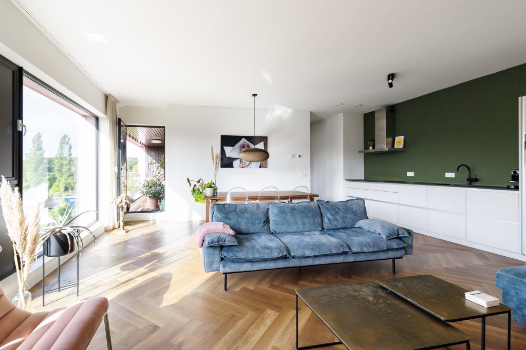 De open keuken sluit naadloos aan op de woonkamer en is voorzien van inbouwapparatuur zoals een oven, koelkast, vaatwasser en kookplaat. Via de woonkamer is het balkon bereikbaar, waar je de hele dag door van de zon kunt genieten.
