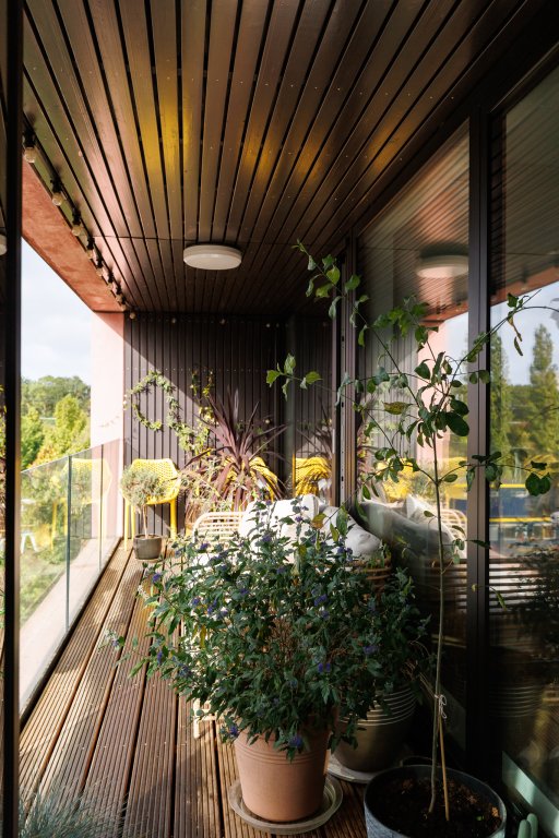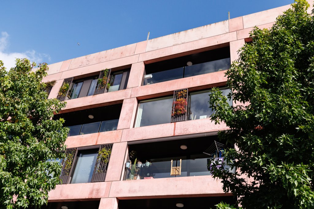 Op de bovenste verdieping bevindt zich het gemeenschappelijke dakterras, waar bewoners samen kunnen komen om te ontspannen, te genieten van het uitzicht en gebruik te maken van de buitenruimte.