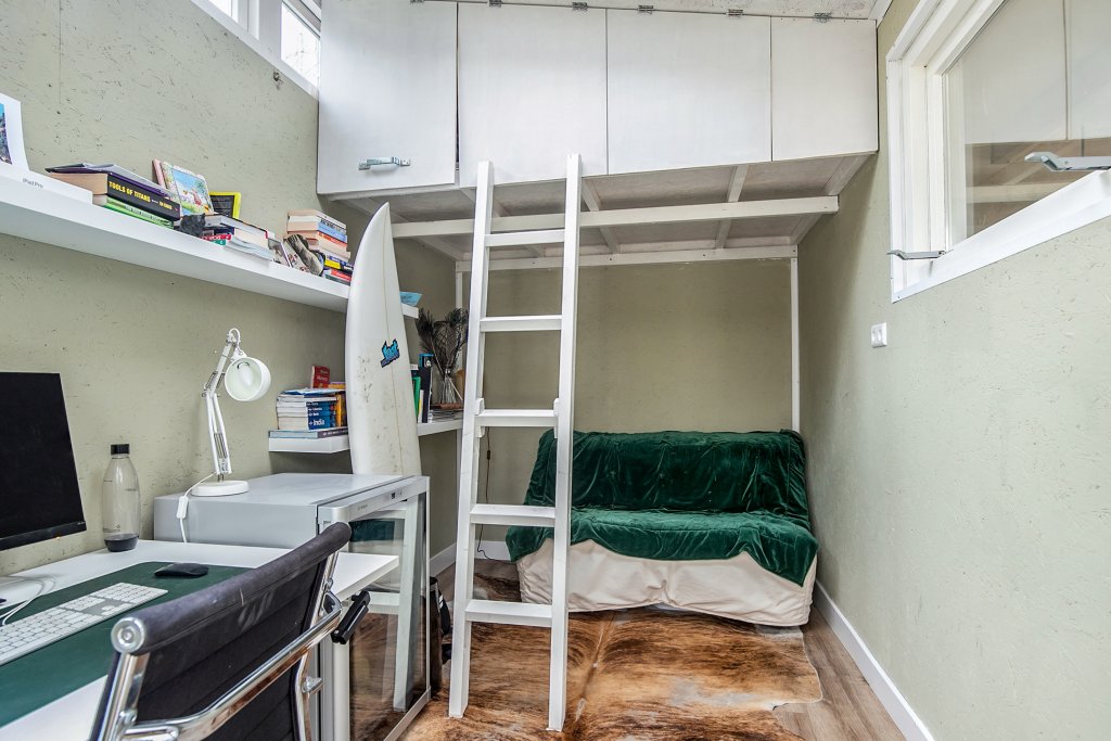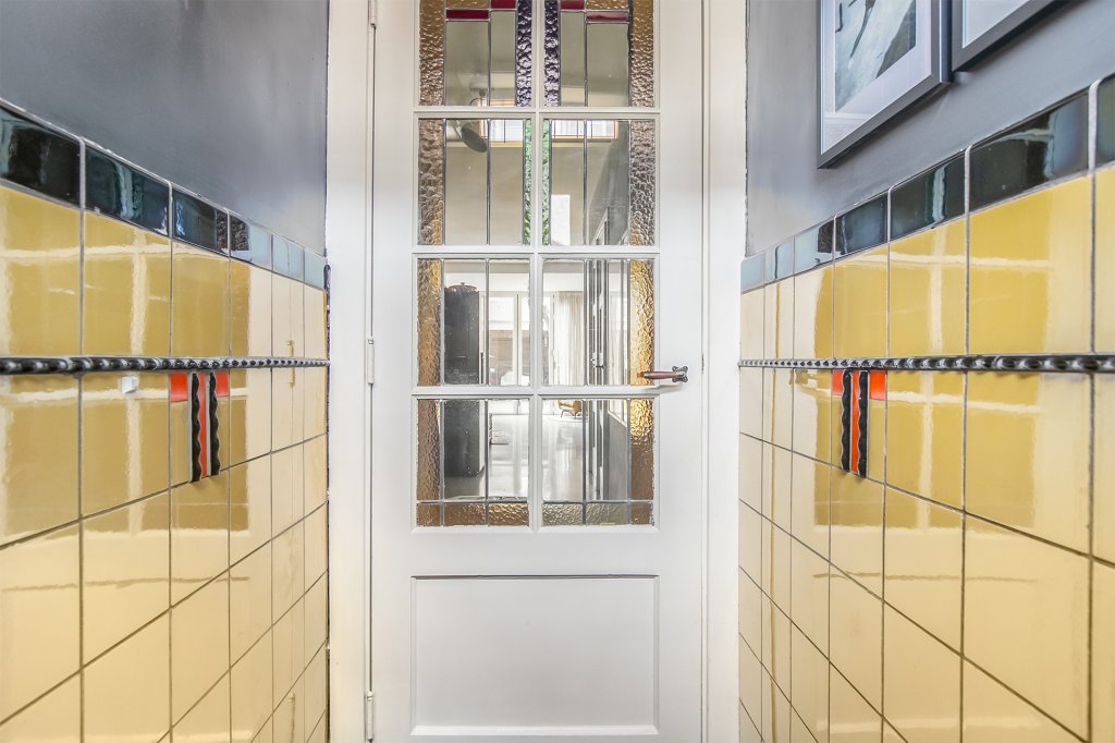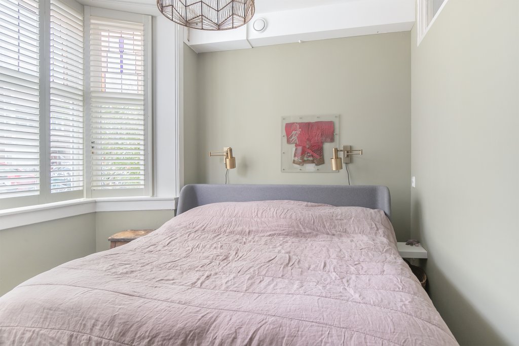 Aan de voorzijde van de woning bevindt zich de royale master bedroom met karakteristieke glas-in-loodramen, die zorgen voor een authentieke jaren ’30 sfeer. Aangrenzend is een extra kamer ingericht als walk-in closet, maar deze ruimte is ook uitstekend te gebruiken als werk- of babykamer.