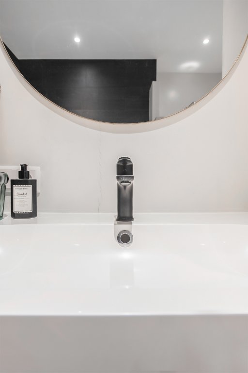 Via de hal bereik je de nette badkamer en het separate toilet. De badkamer is compleet uitgerust met een ligbad, inloopdouche, dubbele wastafel en wasmachineaansluiting.