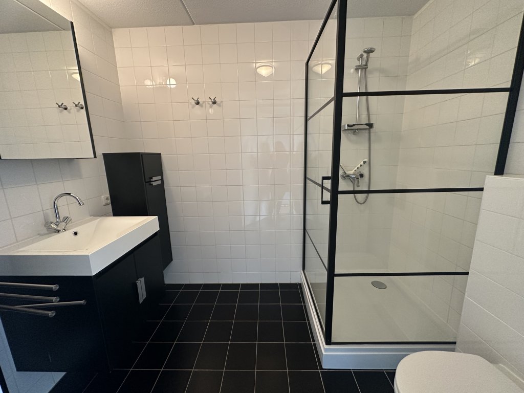 3 slaapkamers waarvan één toegang heeft tot het balkon. Een badkamer met een wastafel, douchehoek en toilet.