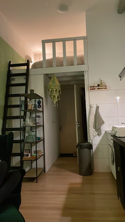 De studio heeft een vide waardoor je jouw slaap- en leefruimte gescheiden kunt houden. De badkamer is voorzien van een nette douche en zwevend toilet. De keuken is voorzien van een keukenblok met wasbak (exclusief kookplaat en koelkast).