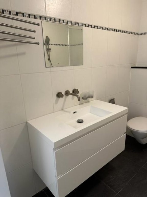 Vanaf de vaste trap bereik je de overloop met toegang naar 3 slaapkamers en de badkamer voorzien van een wastafelmeubel, toilet en een ligbad.