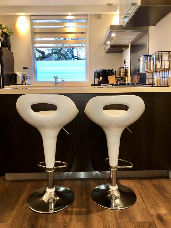 Entree via de voortuin, vanuit het voorportaal komt u in de hal met de toegang tot de woonkamer met zeer mooie open keuken, toilet, en trap naar boven. De woonkamer is voorzien van een prachtige vloer en de luxe keuken is voorzien van een combi oven, vaatwasser, 5-pits gasfornuis, afzuigkap en koel/vries combinatie.