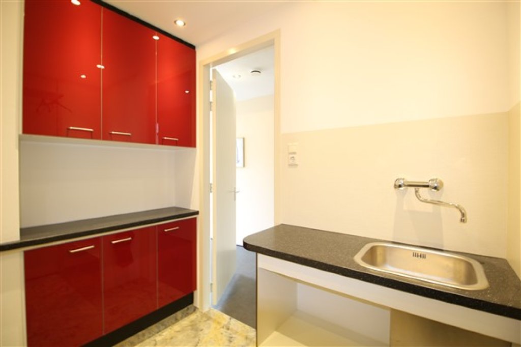 De keuken is voorzien van een inductie kookplaat, vaatwasser, magnetron, oven, koelkast en diepvriezer. Door het gehele appartement ligt een pvc vloer met vloerverwarming. Verder is er een airco.
