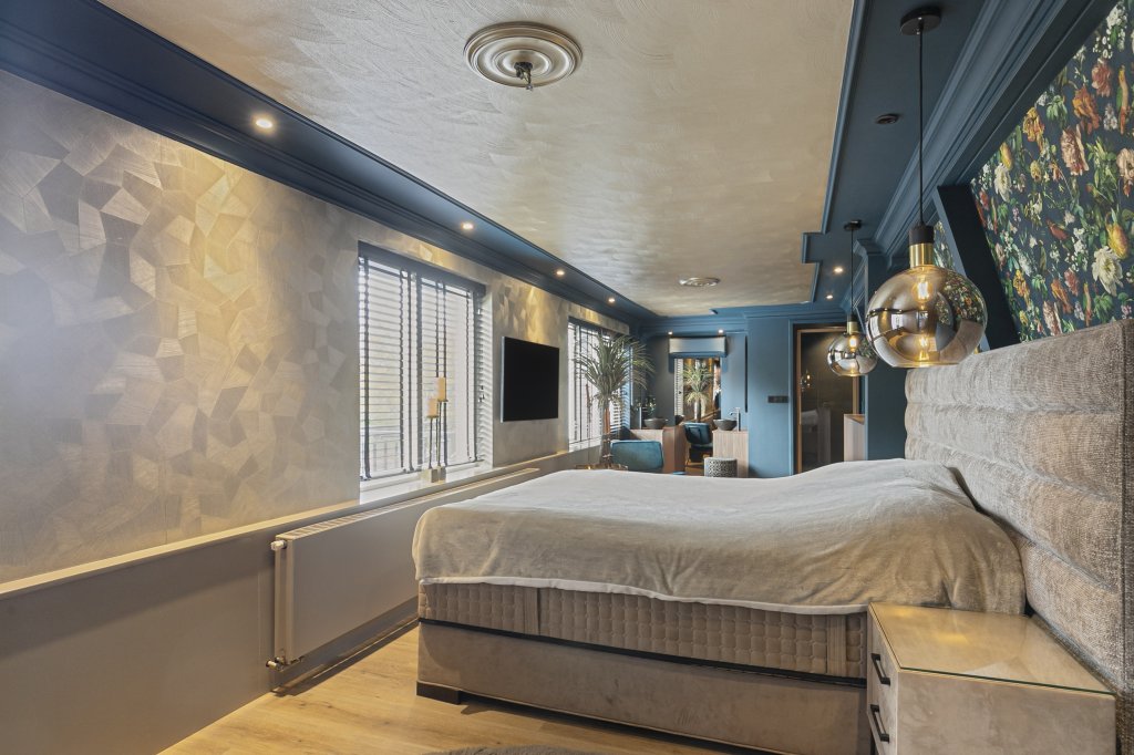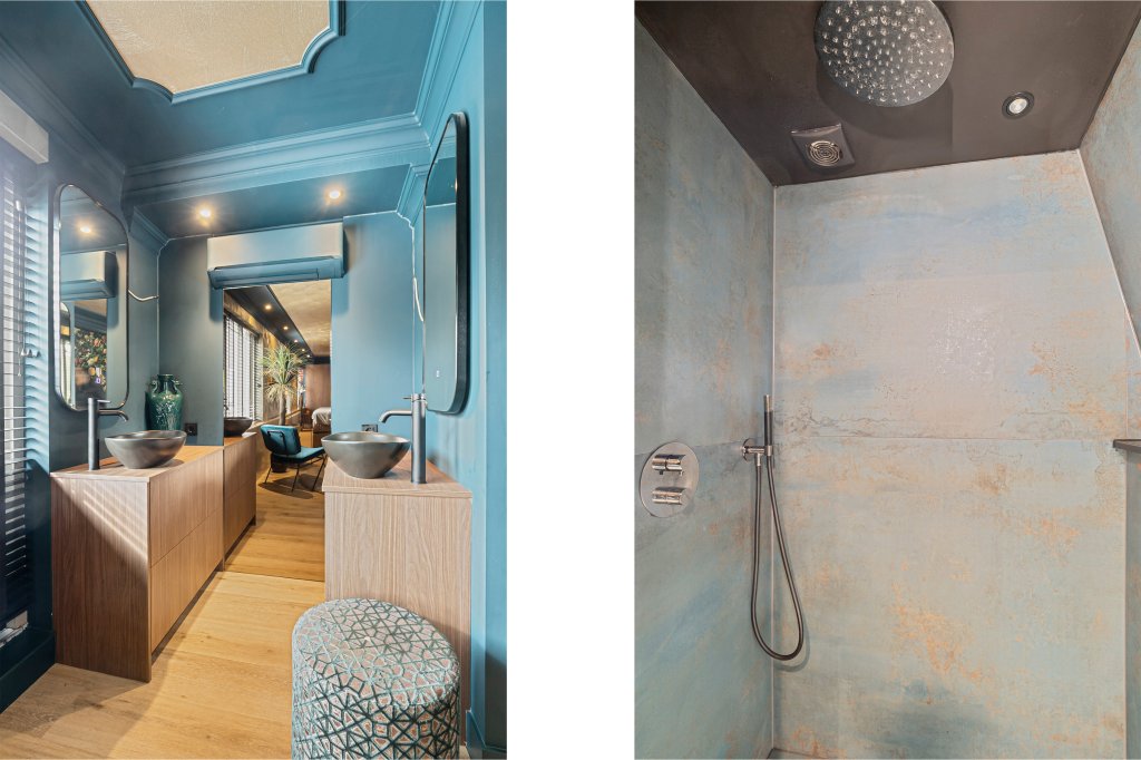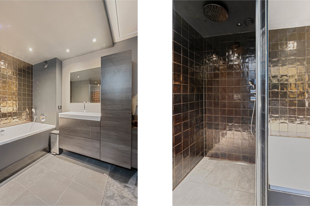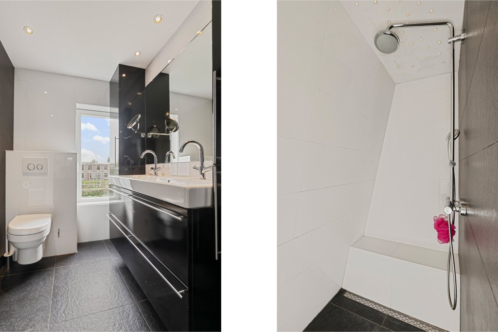 In het soutterain bevindt zich een ruime slaapkamer met eigen badkamer; de luxe badkamer is voorzien van een ligbad, wastafelmeubel en aparte inloopdouche.