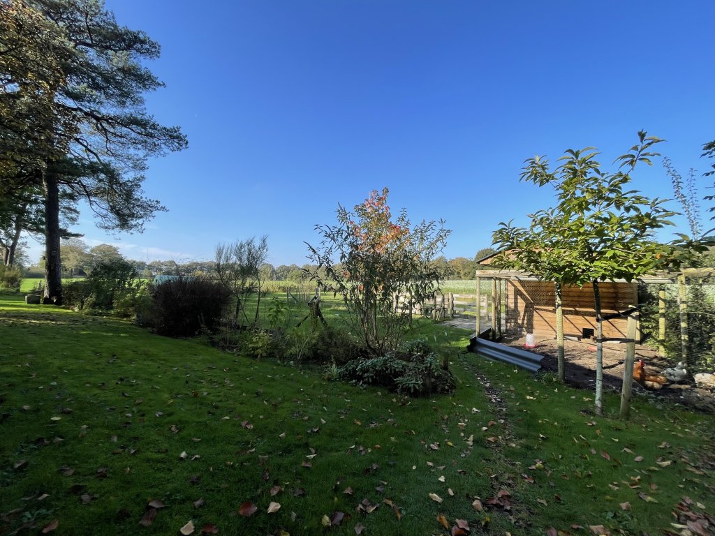 De zonnige, royale tuin is vanuit alle vertrekken direct toegankelijk en vormt de ideale plek om te ontspannen of je huisdier vrij te laten rondlopen. Naast de woning ligt een handige schuur, en garage.