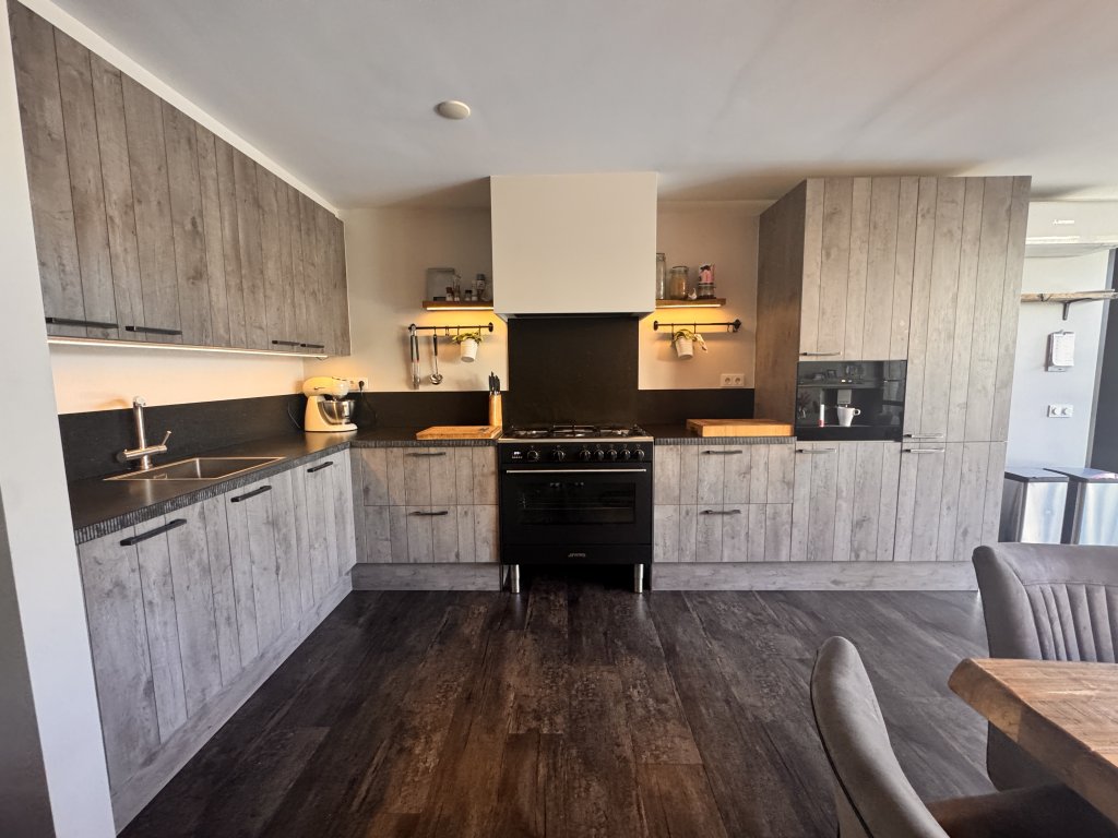 Bij binnenkomst valt de lichte en ruime woonkamer op, met grote ramen die zorgen voor veel daglicht. De open keuken is modern ingericht en compleet uitgerust met hoogwaardige inbouwapparatuur.