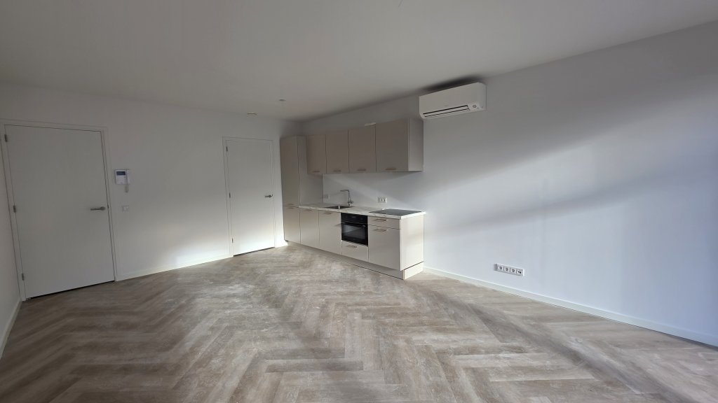 Door het gehele appartement ligt een elegante PVC visgraatvloer, wat zorgt voor een luxe uitstraling en onderhoudsgemak.