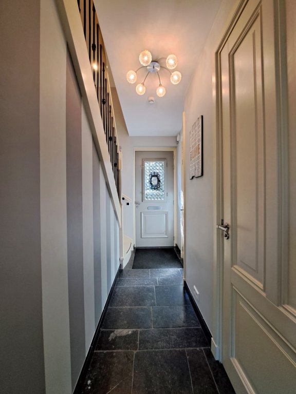 Vanuit de gang is ook het betegelde toilet, de grote berging waar ook de wasmachine en droger staan opgesteld en de ruime trap naar de ruime eerste verdieping.