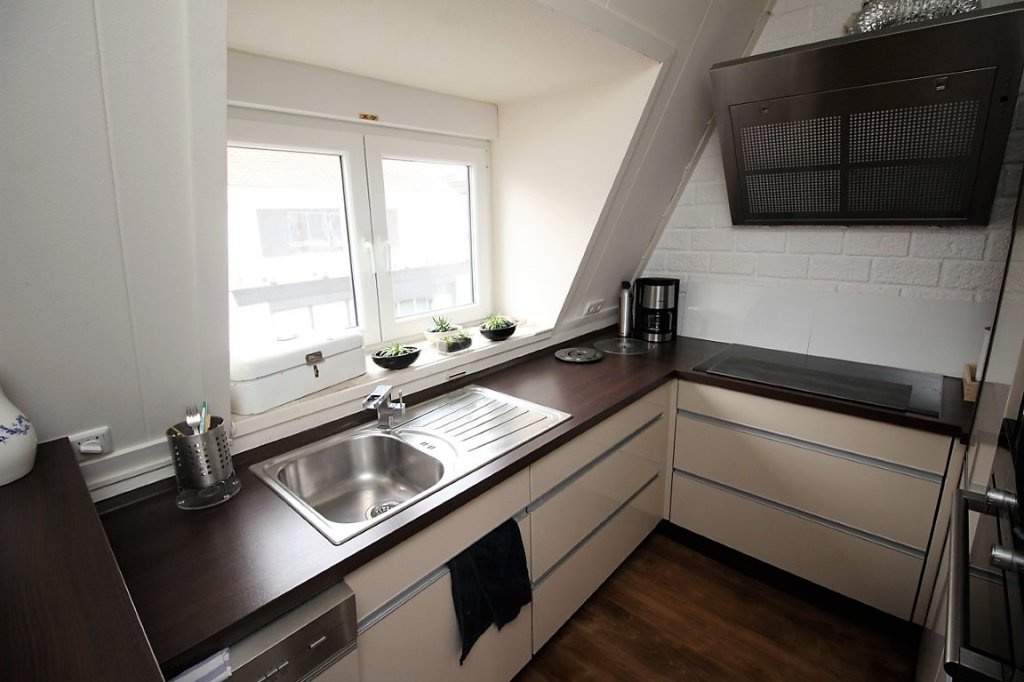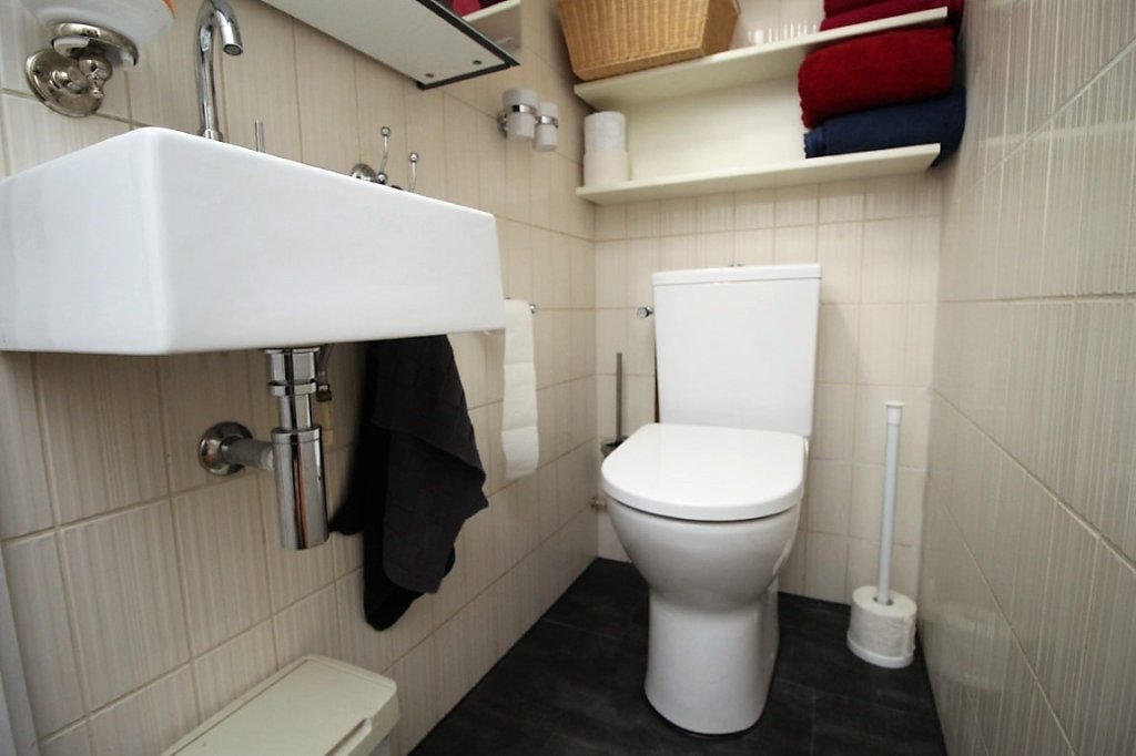 Indeling: trapopgang, overloop woonkamer met toegang tot dakterras, toilet met fontein, badkamer met douche, keuken voorzien van vaatwasser, 5-pits inductie kookplaat, wasemkap, koelkast, vriezer, oven en magnetron. Slaapkamer voorzien van 2-persoonsbed en grote kledingkast.