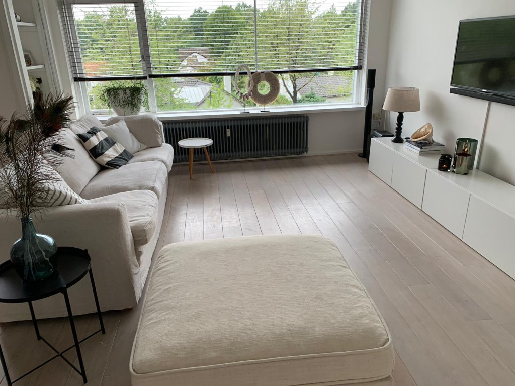 Woonkamer welke ook voorzien van eens schitterende massief houten vloer en stucwerk wandafwerking geeft ook toegang tot slaapkamer II, het balkon is aan de voorzijde in de open keuken. Alle slaapkamers zijn voorzien van een massief houten vloer.