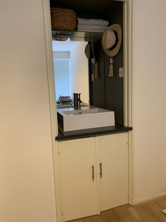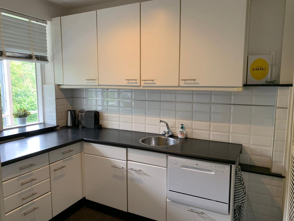 De keuken welke deels is afgescheiden van de woonkamer heeft een 4 pits gastoestel met wasemkap en koelkast.