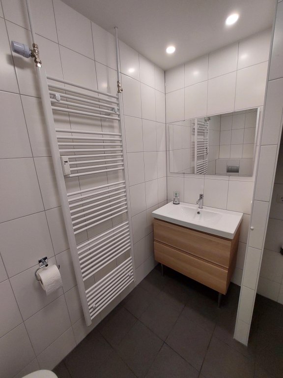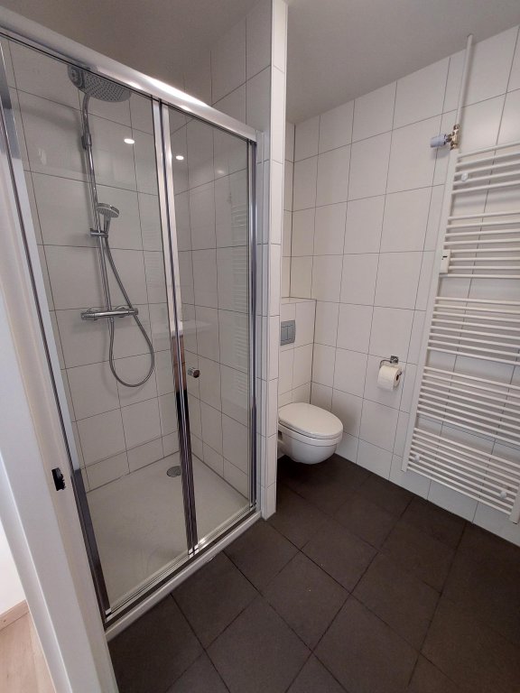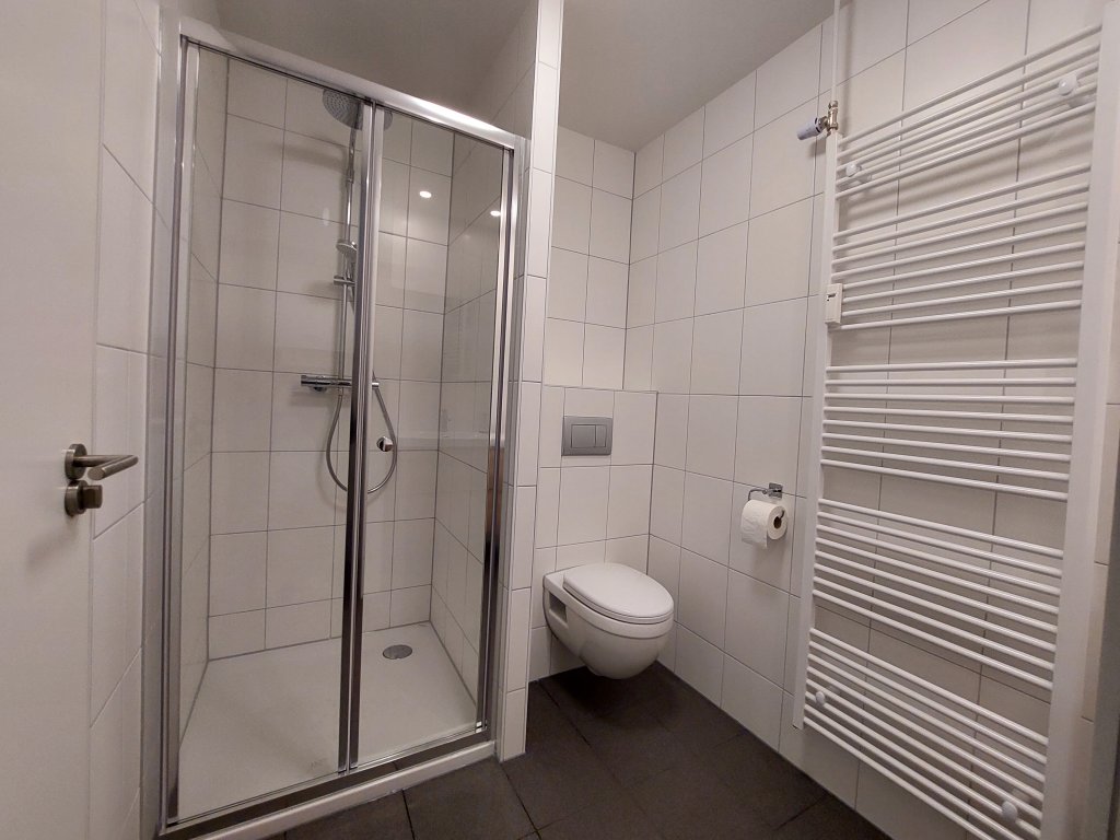 - Nieuwe badkamer, voorzien van douche, toilet en wasmeubel.