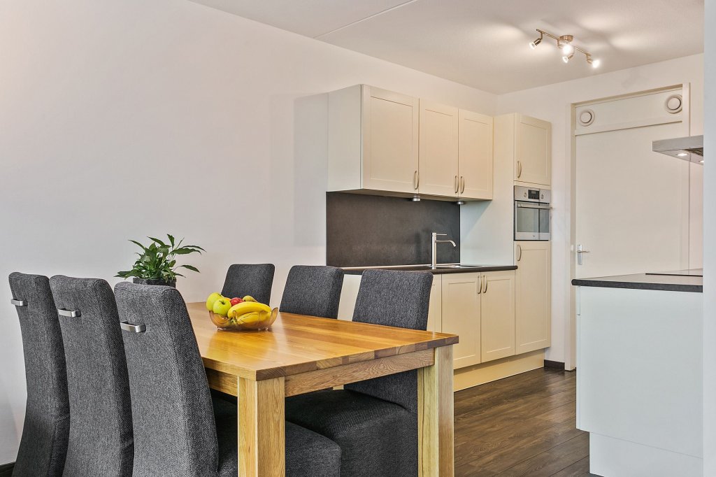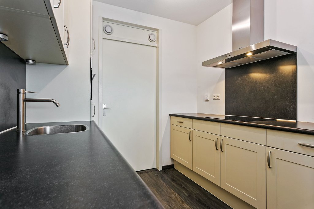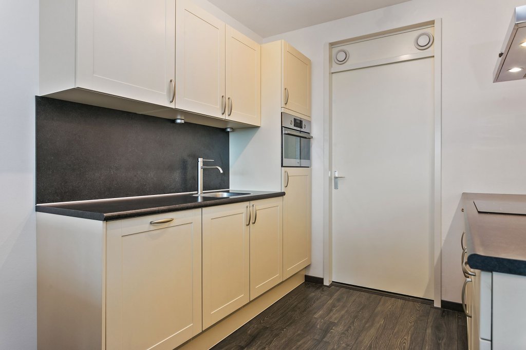 De open keuken is voorzien van diverse onder- en bovenkastruimte en inbouwapparatuur waaronder een 4-pits inductiekookplaat, combioven, rvs afzuigkap (recirculatiekap), vaatwasser, koelkast en een spoelbak. Vanuit de keuken is de grote inpandige bergruimte bereikbaar met hierin de aansluitpunten ten behoeve van de wasapparatuur en de mechanische afzuigunit. Er is ook meer dan voldoende ruimte voor het opslaan van bijvoorbeeld uw keukenvoorraad.