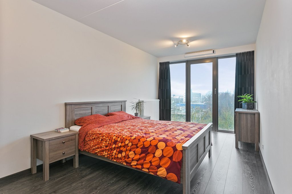 Het appartement heeft twee slaapkamers. De eerste slaapkamer is zeer ruim met een oppervlakte van 18 m2. De tweede slaapkamer heeft een oppervlakte van 10 m2 en kan ook als werkkamer ingericht worden. De grote verdiepingshoge raampartij zorgt in beide kamers voor een perfecte lichtinval en een fraai uitzicht.