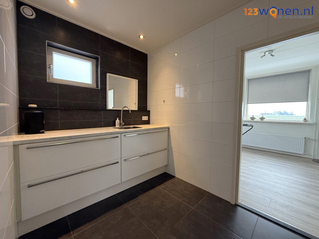 Woonkamer met open keuken voorzien van inbouwappatuur als vaatwasser en koelkast en vriezer. In deze ruime keuken kan er koffie gedronken en gegeten worden aan de bartafel als eettafel, waar je geniet van het vrije uitzicht over landerijen. Woonkamer voorzien van comfortabele bank tv en heerlijk uitzicht! Badkamer voorzien van ruim wastafelmeubel en douche. Vanuit zowel de woonkamer als badkamer kan intrede worden gemaakt tot de eerste slaapkamer.