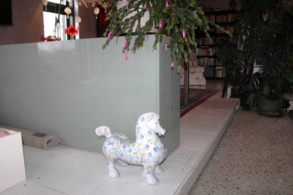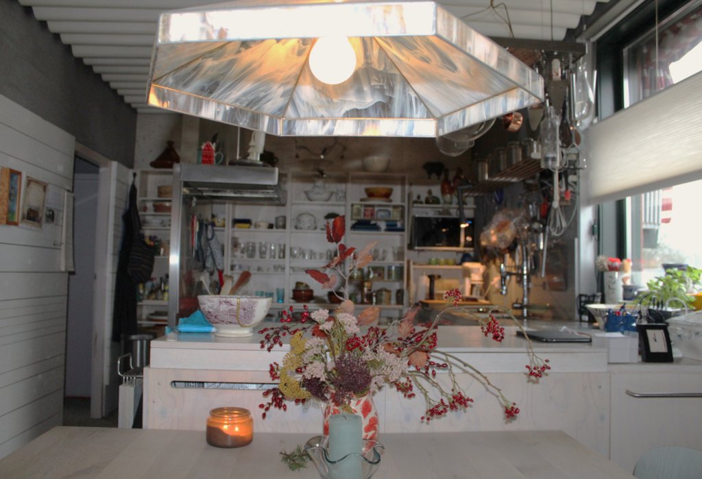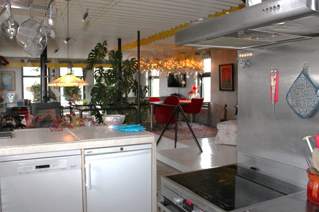 Eerste verdieping: woonkamer met zithoek, leeshoek én werk/studeerhoek, volledig voorziene keuken met eethoek voorzien van o.a. vaatwasser, combi-oven, koelkast en inductiekookplaat, openslaande deuren naar het balkon met uitzicht over de dorpskern.