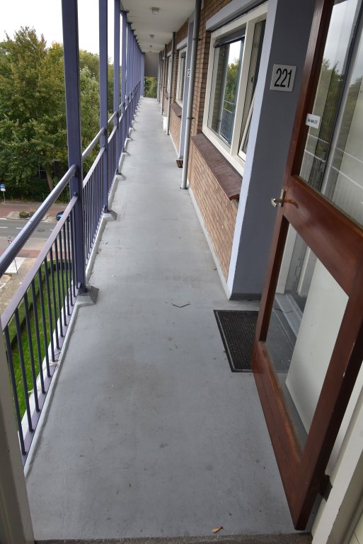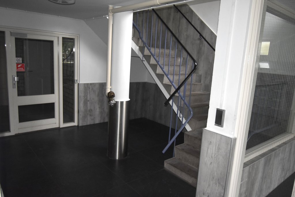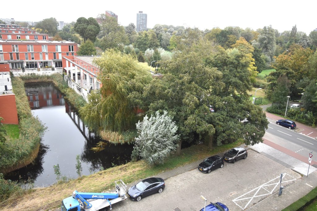 Afgesloten entree met bellentableau en brievenbussen. Toegang tot de hal met trappenhuis en lift naar de 6e verdieping. Entree appartement. Hal met meterkast, vaste kast met wasmachine en wasdroger. Er is een moderne toilet. Lichte woonkamer aan de achterzijde met uitzicht op het groen. De slaapkamer is gesitueerd aan de voorzijde en geeft toegang tot de moderne badkamer, welke is voorzien van een wastafelmeubel en douche. Er is een moderne keuken,voorzien van een koel-/vriescombinatie, een combi oven/magnetron, inductiekookplaat, een vaatwasser en een afzuigkap. Vanuit de keuken heeft u toegang tot het balkon aan de achterzijde, gelegen op het zuidwesten. U kunt op eigen terrein parkeren (slagboom), de berging op de begane grond wordt niet meeverhuurd.