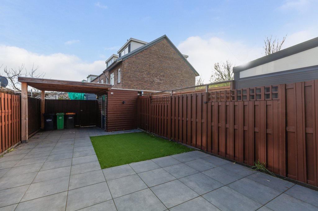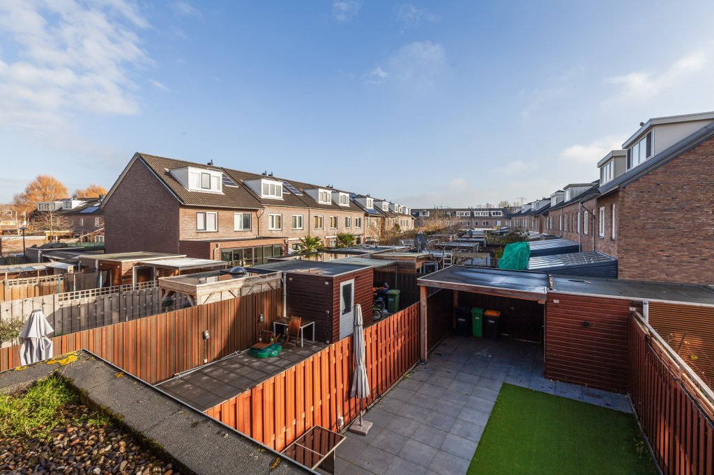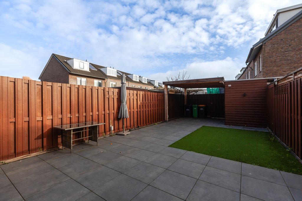 Er is een moderne open keuken (met alle keukengerei en servies) met marmeren blad en met diverse inbouwapparatuur, te weten: vaatwasser, inductiekookplaat met afzuiging in de kookplaat, combi-oven, en een koel- vriescombinatie. Er is een keurig aangelegde zonnige achtertuin (ZO) met berging en achterom. Bij de berging is ook een mooie overkapping.
