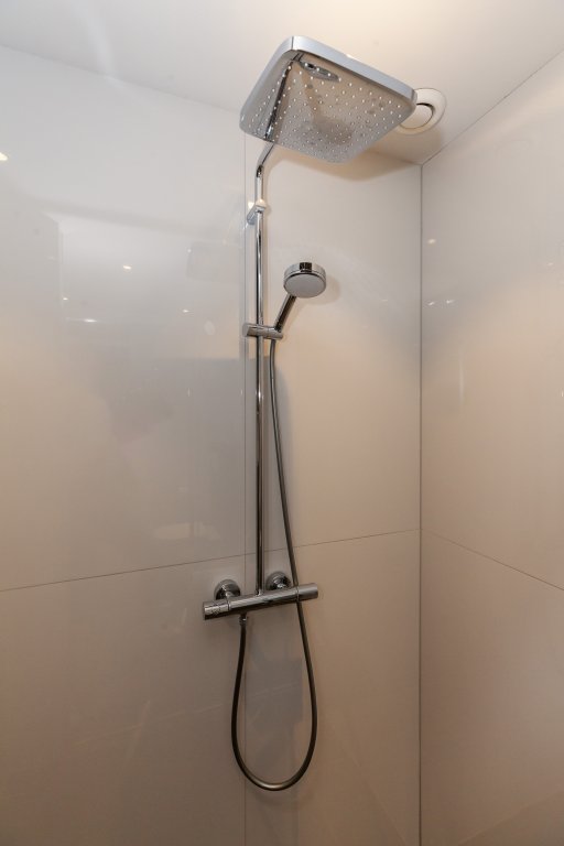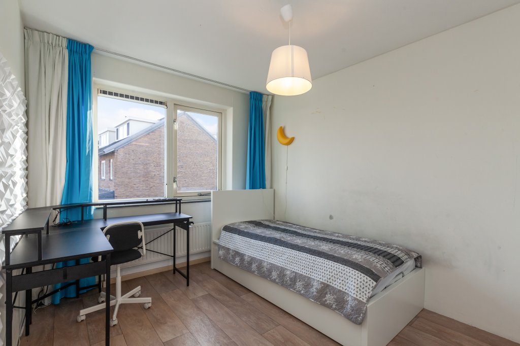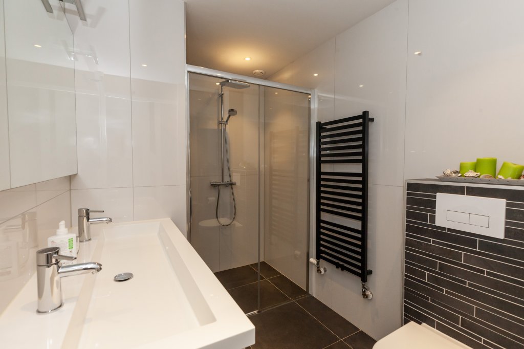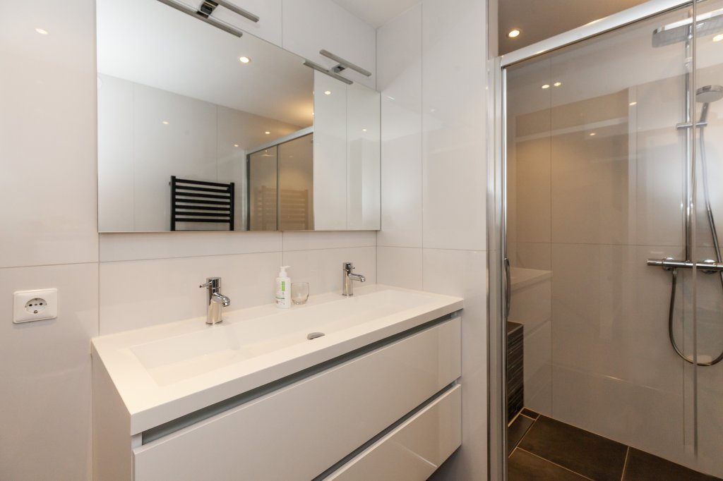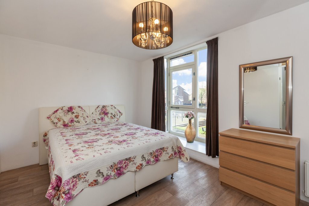 Overloop. Zeer ruime slaapkamer 1 met 2-persoonsbed, grote kledingkast en een ladekast. De 2e slaapkamer heeft een bed, een kledingkast en een bureau met stoel. De 3e slaapkamer heeft een 1- persoonsbed. De ruime badkamer met zwevend toilet, ruime inloopdouche en een wastafelmeubel met dubbele wastafel. Op de vloer ligt vinyl.