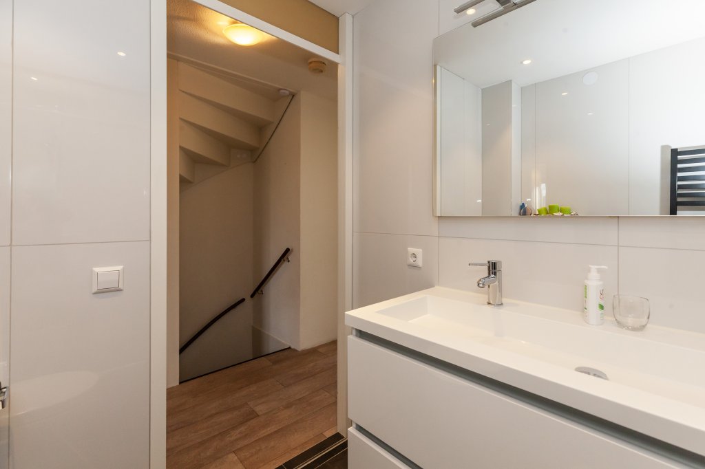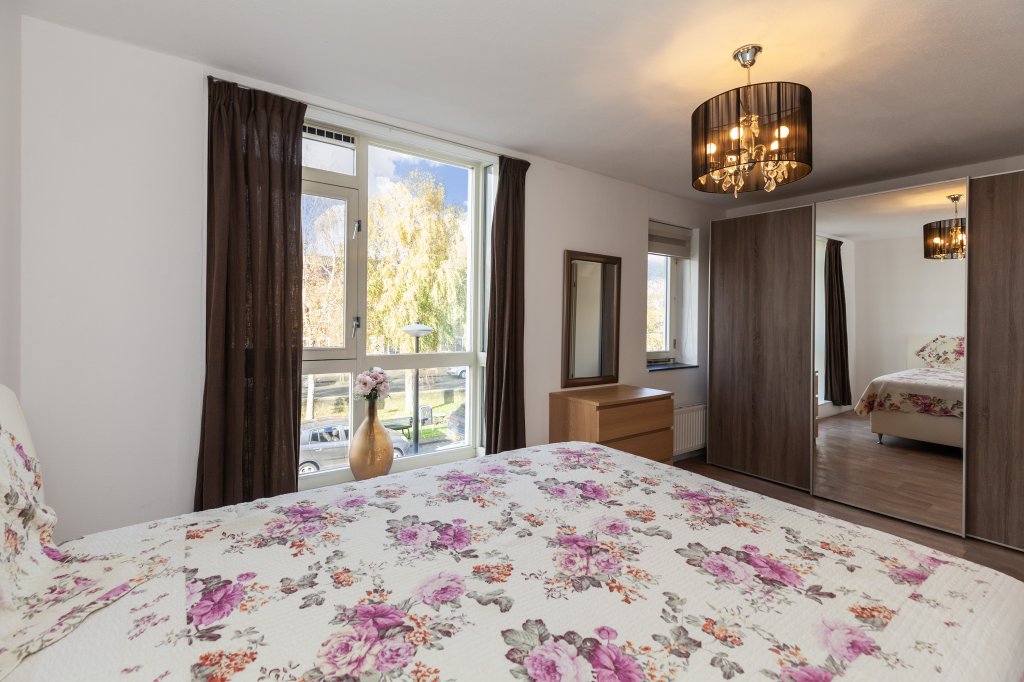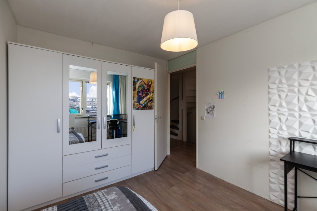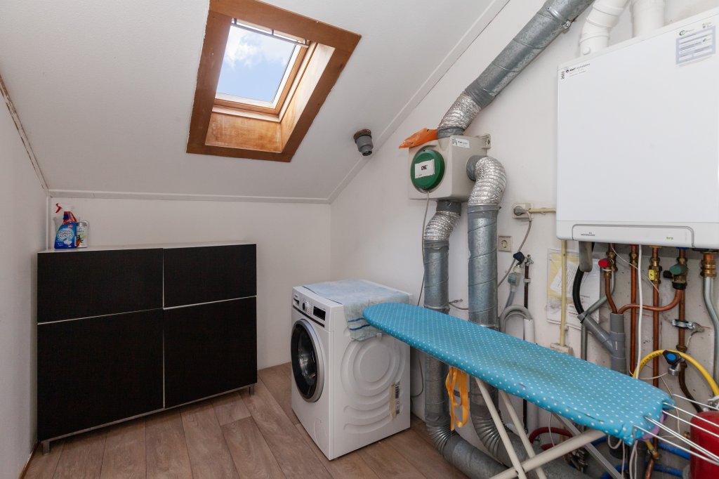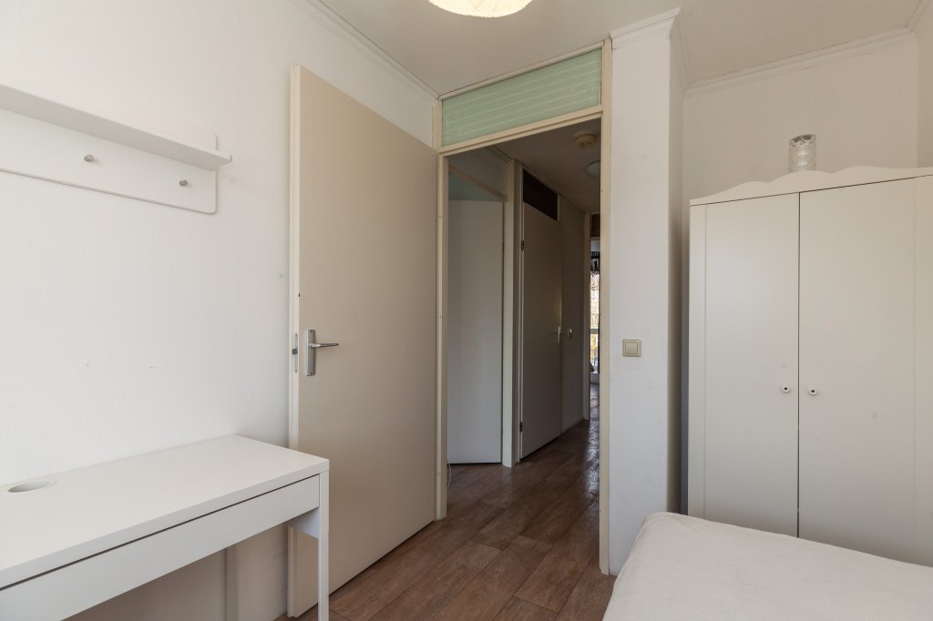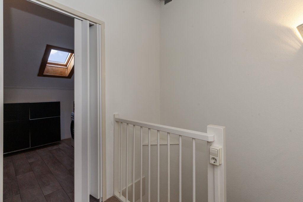 Overloop en vervolgens 2 slaapkamers. In 1 slaapkamer staat een kledingkast, in de 2e slaapkamer kunt u zelf uw spullen plaatsen. Verder is er op deze verdieping een wasmachine. Op de vloer ligt vinyl.