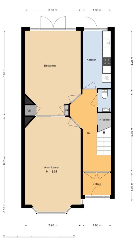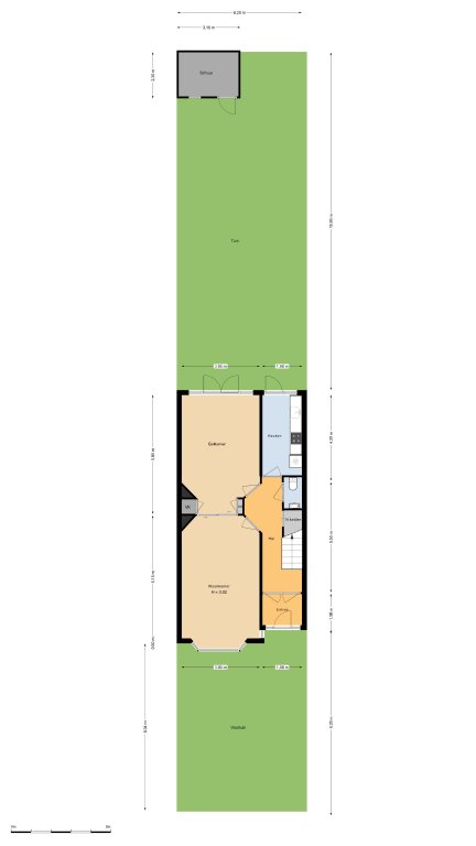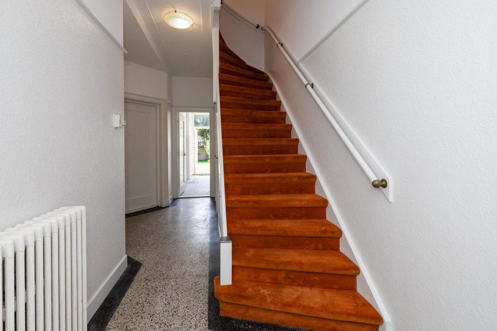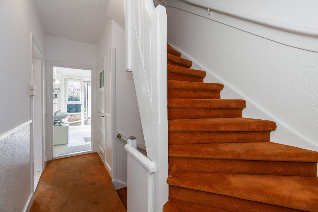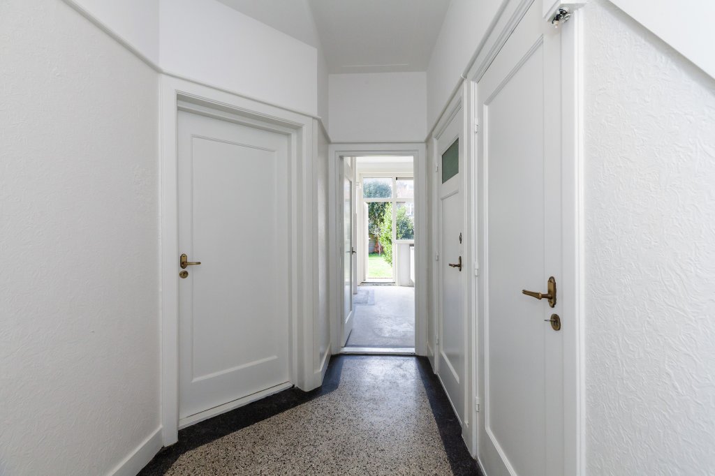 Riante voortuin met fietsenberging, mooie ruime klassieke hal met meterkast en een gang met marmeren vloer. In de gang is de toilet met een klassiek fonteintje. Via een deur in de gang gaat u naar de ruime kelder, met veel ruimte voor opslag of uw wijnflessen (gezien het goede klimaat), waar ook de CV-ketel is. Er is een zeer ruime woonkamer en suite (ca. 49 m2, met gordijnen) met een mooie laminaatvloer, grote raampartijen en openslaande deuren naar de riante tuin. Naast de woonkamer is de ruime moderne en volledig nieuwe keuken met div. inbouwapparatuur, een inductiekookplaat, een vaatwasser, afzuigkap, koel- vriescombinatie, combi-oven en veel kastruimte. In de ruime groene tuin, ca. 105 m2, (met elektrisch zonnescherm), staat een schuur om bijv. uw tuinmeubelen in op te bergen.