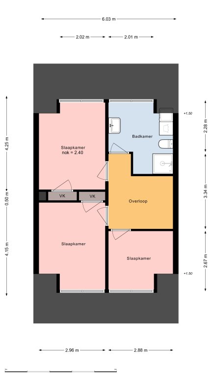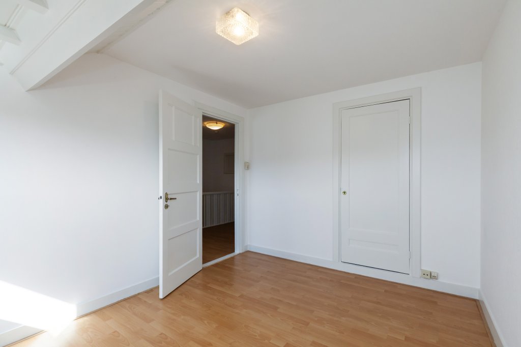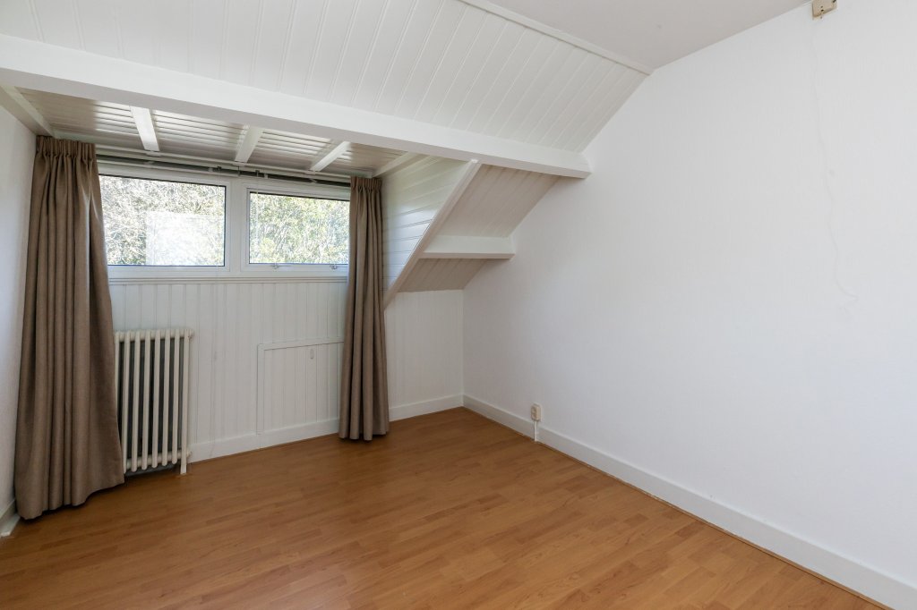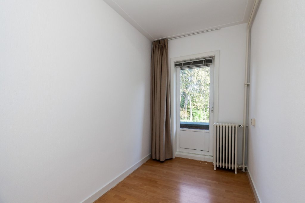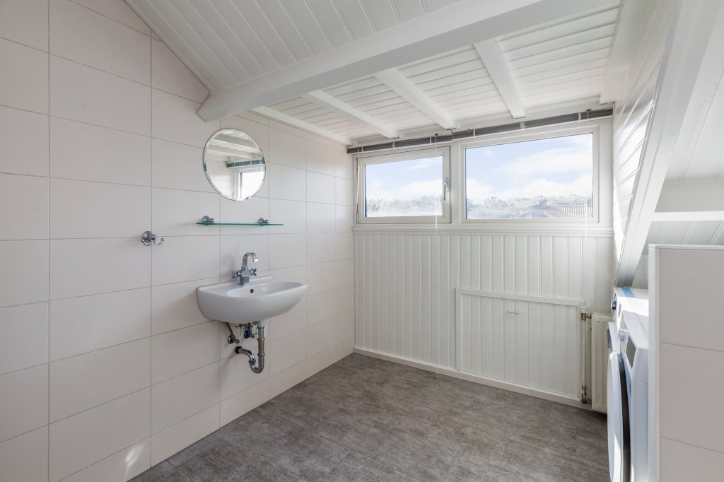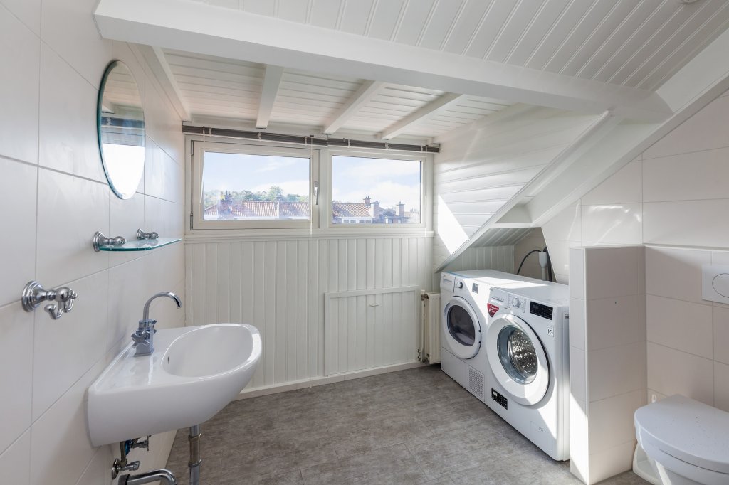 Ruime overloop met toilet, 3 slaapkamers (met laminaatvloer, Luxaflex en gordijnen). Er is een slaapkamer aan de tuinzijde (ca. 12 m2), met een vaste kast en opbergruimte in het schuine gedeelte van de ruimte. De 2e en 3e slaapkamer (ca. 12 en 7 m2) zijn aan de voorkant van het huis. De 2e slaapkamer heeft een vaste kast. Er is verder een mooie badkamer met moderne douche, een wastafel en de wasmachine en droger staan klaar voor gebruik!