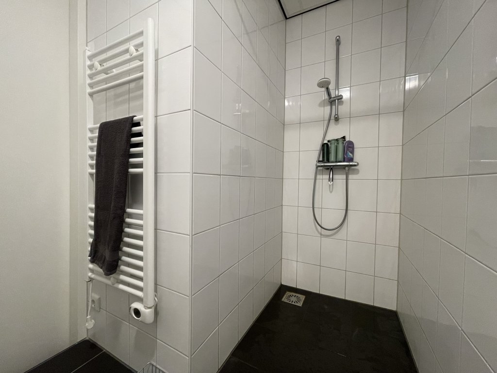 Entree, woonkamer met open keuken. De keuken is voorzien van elektrische kookplaat, afzuigkap, spoelbak en koelkast. Ruime slaapkamer. De moderne badkamer is voorzien van een zwevend toilet, wastafel, design radiator en inloopdouche. Tussen de woonkamer en slaapkamer bevindt zich een hal met de wasmachineaansluiting.