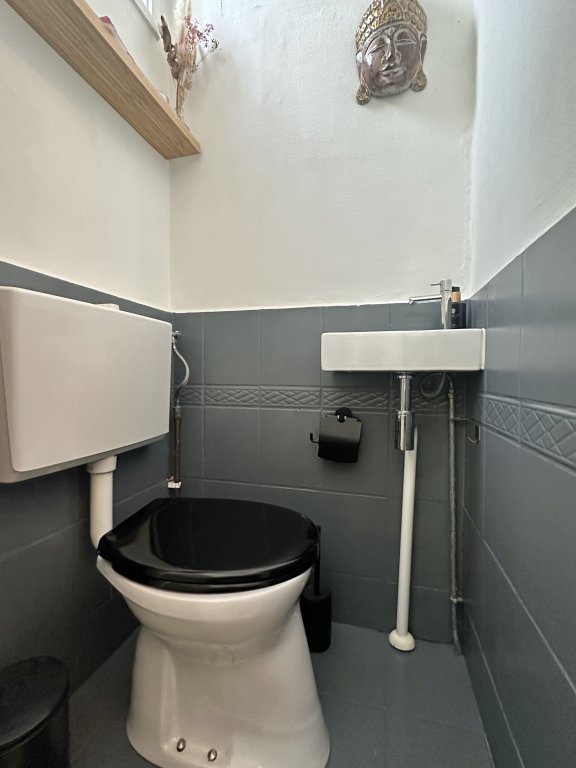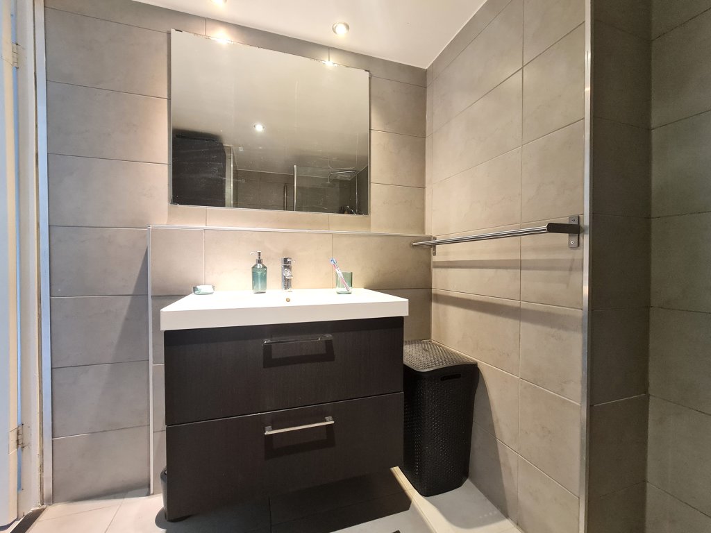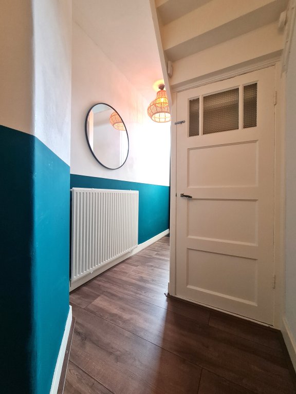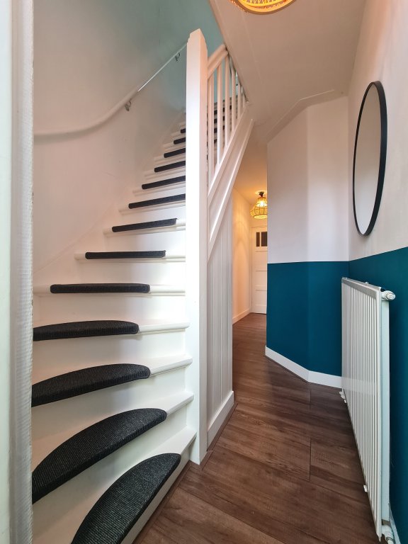 De badkamer is recent in een modern jasje gestoken en beschikt over alle gemakken, waaronder een comfortabele douche en een nette afwerking. Boven bevinden zich de slaapkamers, die zowel als hoofdslaapkamer als logeer- of werkkamer goed te gebruiken zijn.